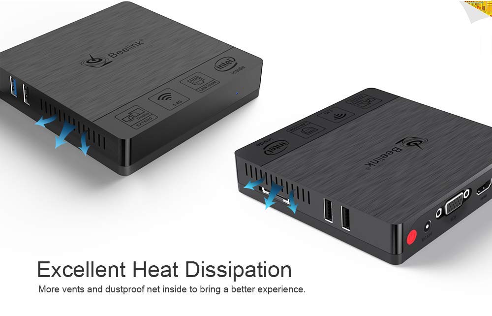 Beelink BT3Pro II Mini PC Computer Windows 10 4GB Ram 64GB eMMC Intel Atom x5-Z8350 Multi Media Desktop PC HDMI VGA Dual Display, Full 4K HD H.265 /1000Mbps LAN / 2.4G+5.8G Dual WiFi/VESA Mount
